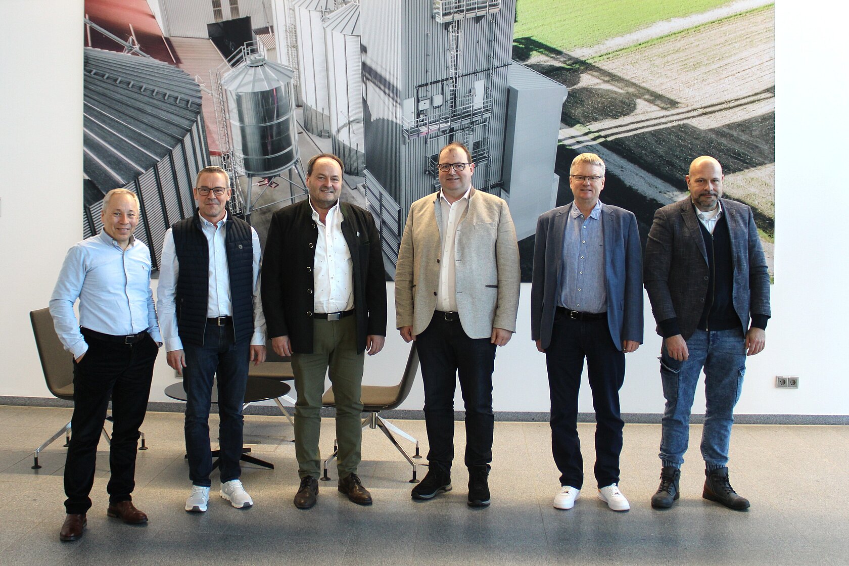 Das Bild zeigt (v. l.) Vertriebsleiter Tobias Latein, Geschäftsführer Rainer Hettwer, Bürgermeister Christian Thiel, Landrat Michael Fahmüller, Geschäftsführer Thomas Laxhuber und Pressesprecher Mathias Kempf.