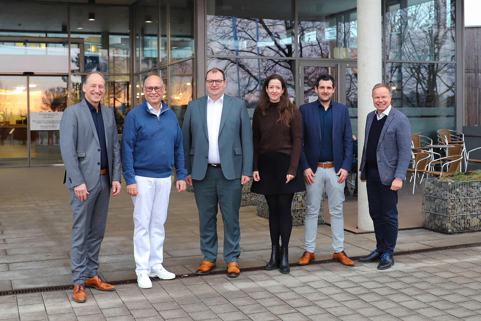 Bild: Freuen sich über die großzügige Bezuschussung des Freistaats Bayern für die Fachabteilung Gynäkologie und Geburtenhilfe an den Rottal-Inn Kliniken (v.l.n.r.): MdL Martin Wagle, Dr. med. Jürgen Terhaag, Chefarzt für Gynäkologie und Geburtshilfe, Landrat und Verwaltungsratsvorsitzender Michael Fahmüller, Hebamme Katharina Durner sowie die beiden Klinik-Vorstände Florian Pletz und Robert Koch.
