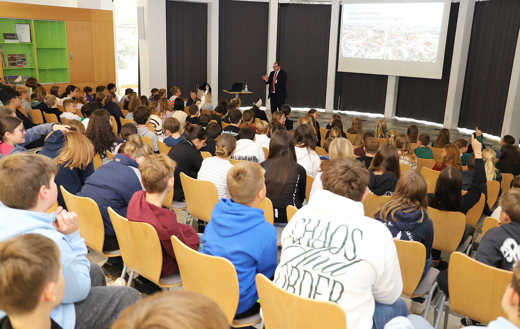 „Als gewählter Volksvertreter halte ich es für meine besondere Pflicht, jungen Menschen die Bedeutung und Funktionsweise von Demokratie näher zu bringen und zu zeigen, dass auch jemand wie ich keine ‚herrschende Elite‘ ist, sondern ein Mensch, der von den Bürgern für eine gewisse Zeit für ein Amt bestimmt wurde - ähnlich wie die Wahl des Klassensprechers“, so Fahmüller. „Es war mir eine große Freude, den Schülern die Aufgaben eines Landrats bzw. die Funktionsweisen von Landratsamt, Kreistag und Co. näher bringen zu dürfen. Herzlichen Dank für den offenen Austausch und das große Interesse!“