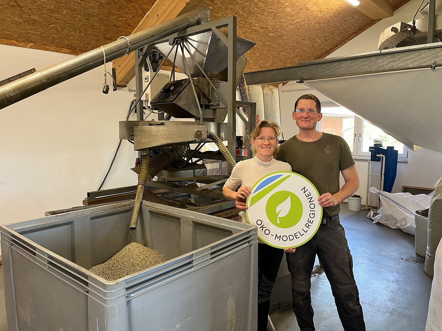 Ein besonders gelungenes Beispiel für eine regionale Wertschöpfungskette liefert der Bio-Hof Meilner aus Wurmannsquick. Durch die Förderung konnte dort eine Ölpresse und ein Konzentrator angeschafft werden. Damit produziert der Betrieb nun hochwertige Bio-Speiseöle, die im eigenen Hofladen und bei weiteren Verkaufsstellen erhältlich sind. Die Ölpresse wurde von einer nahegelegenen Firma im Landkreis Rottal-Inn geliefert – sodass die gesamte Wertschöpfungskette, von der Maschine über den Anbau und die Verarbeitung bis hin zum Verkauf, vollständig im Landkreis Rottal-Inn bleibt.